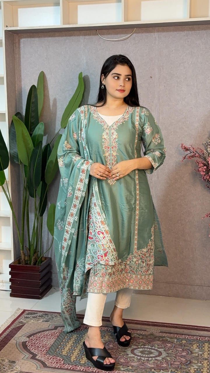 Experience the perfect blend of luxury and comfort with this elegant two-piece set. Designed from premium silk and paired with a soft muslin cotton dupatta, this outfit ensures both sophistication and ease. Delicate sequin and fine embroidery detailing add a touch of sparkle, making it the perfect choice for parties, festivals, and special occasions.